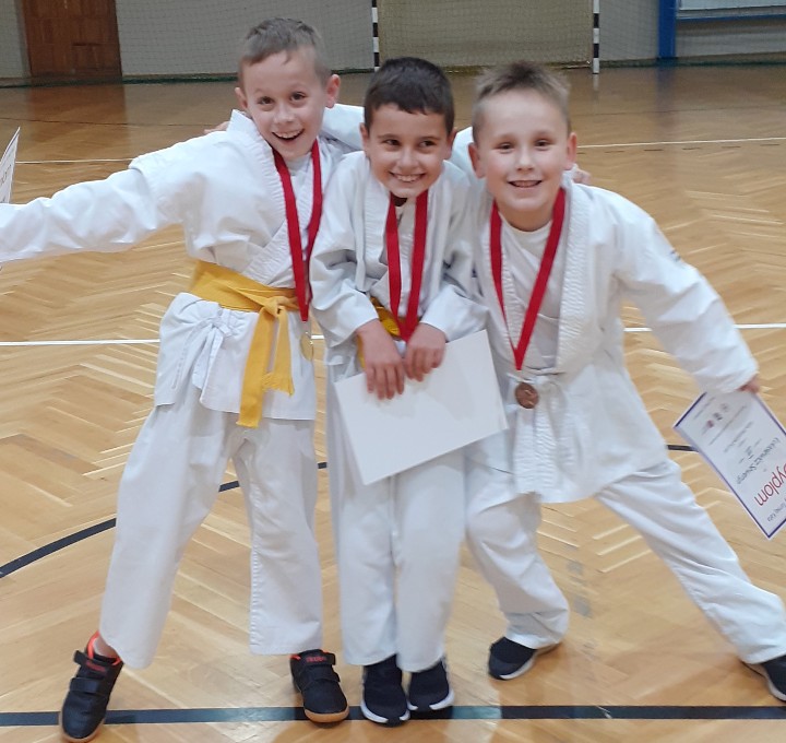 Ponadto w kategorii kata drużynowe do 11 lat nasza drużyna w składzie Borowski Michał, Łukasiewicz Seweryn oraz Gręda Kalina zajęli I MIEJSCE.